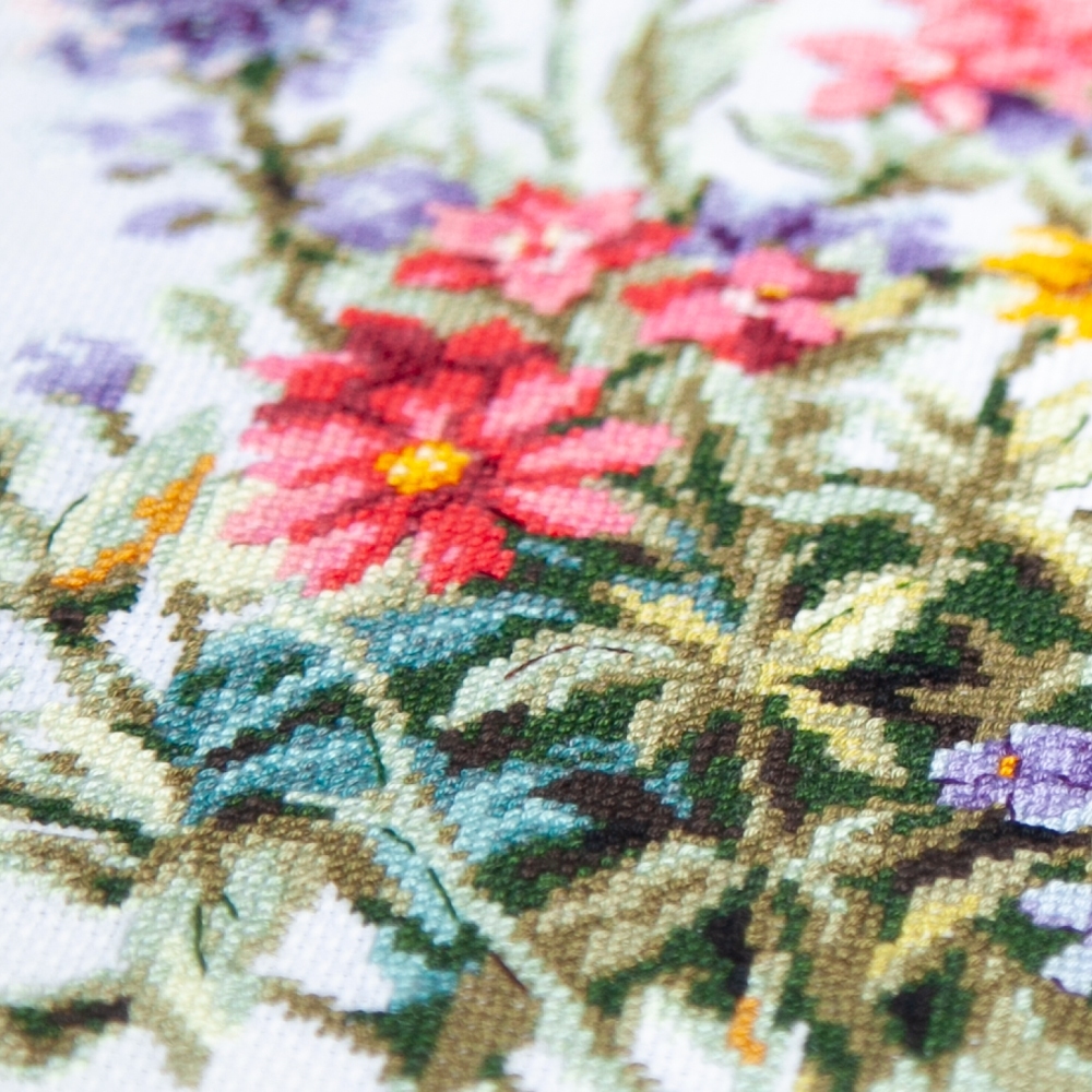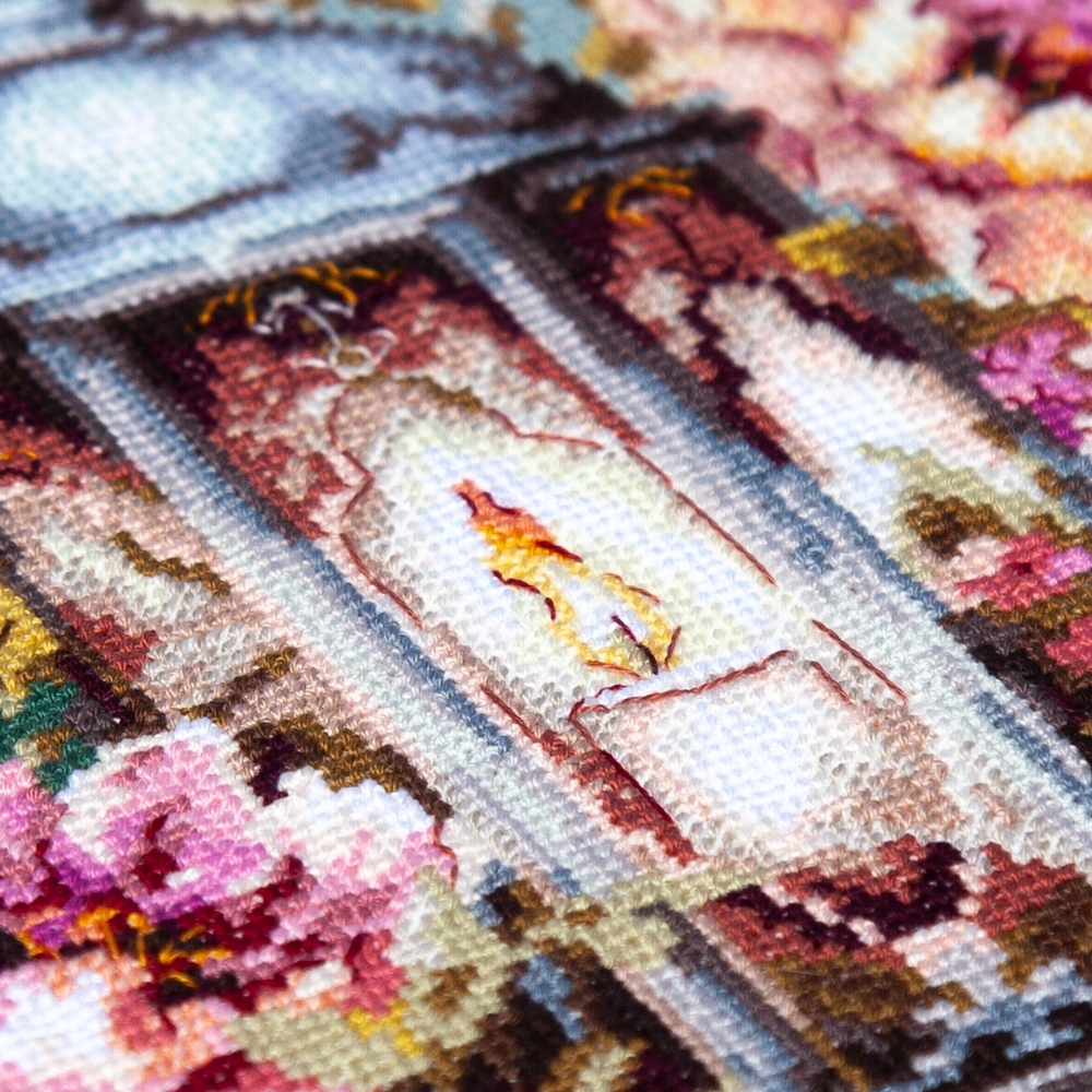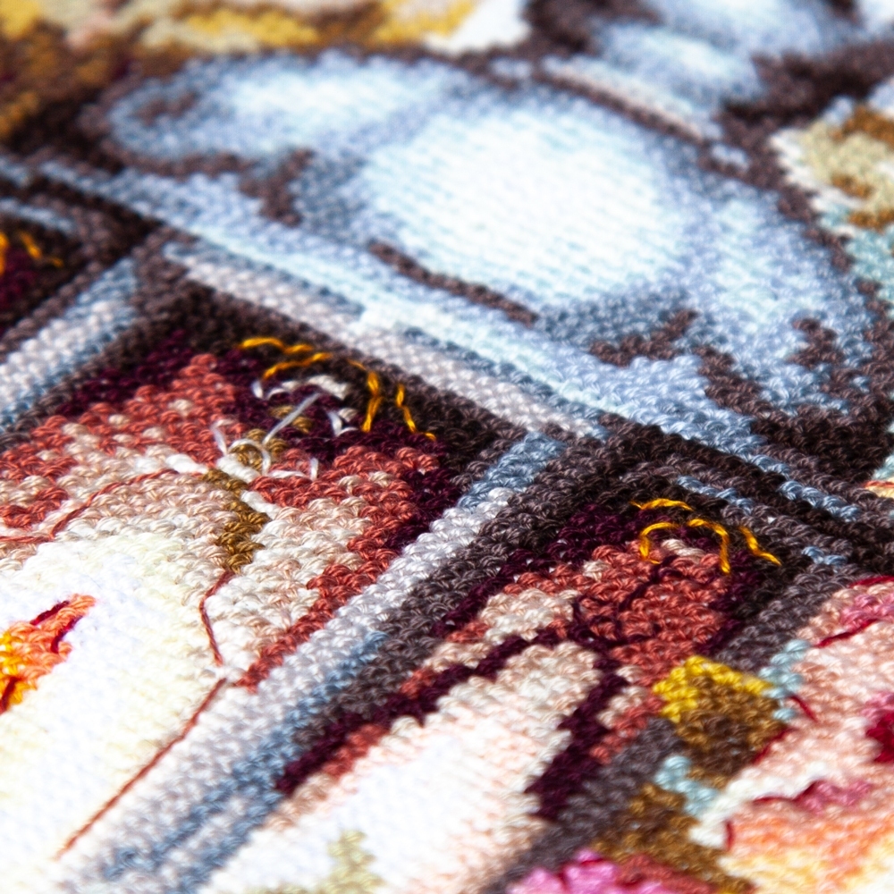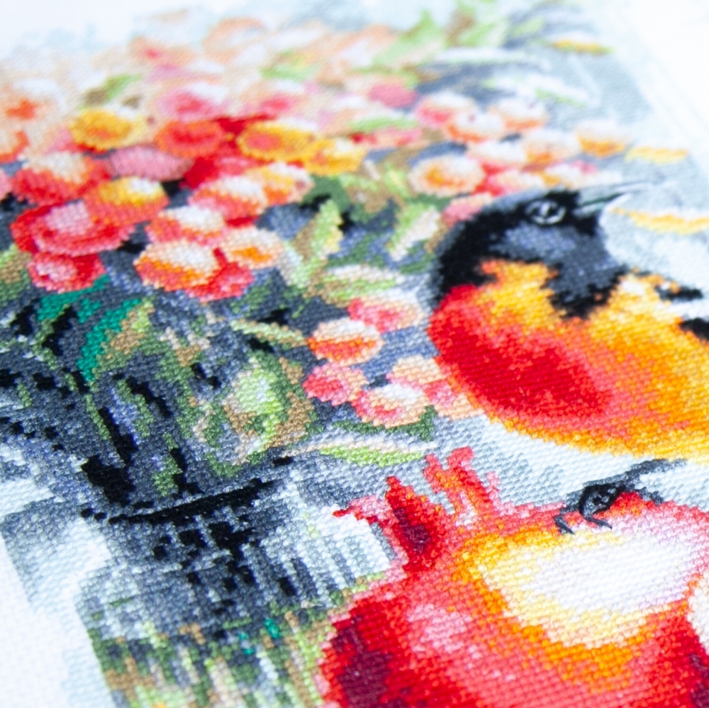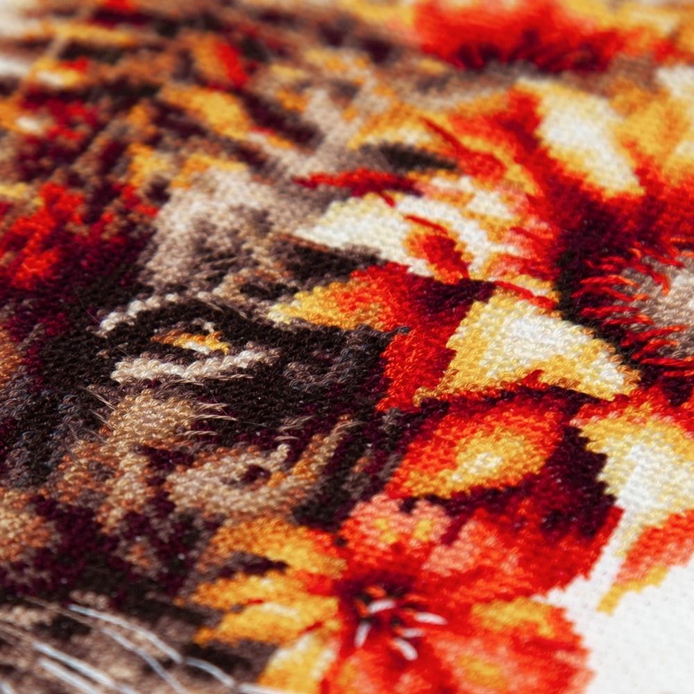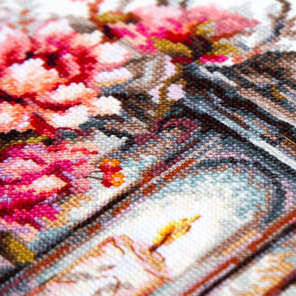 We support clients in promoting our brand: free printed catalogs of our embroidery kits, advertising banners with novelties and photos of finished embroidered works for the client’s website, framed embroidered models for trade shows, shops and showrooms.