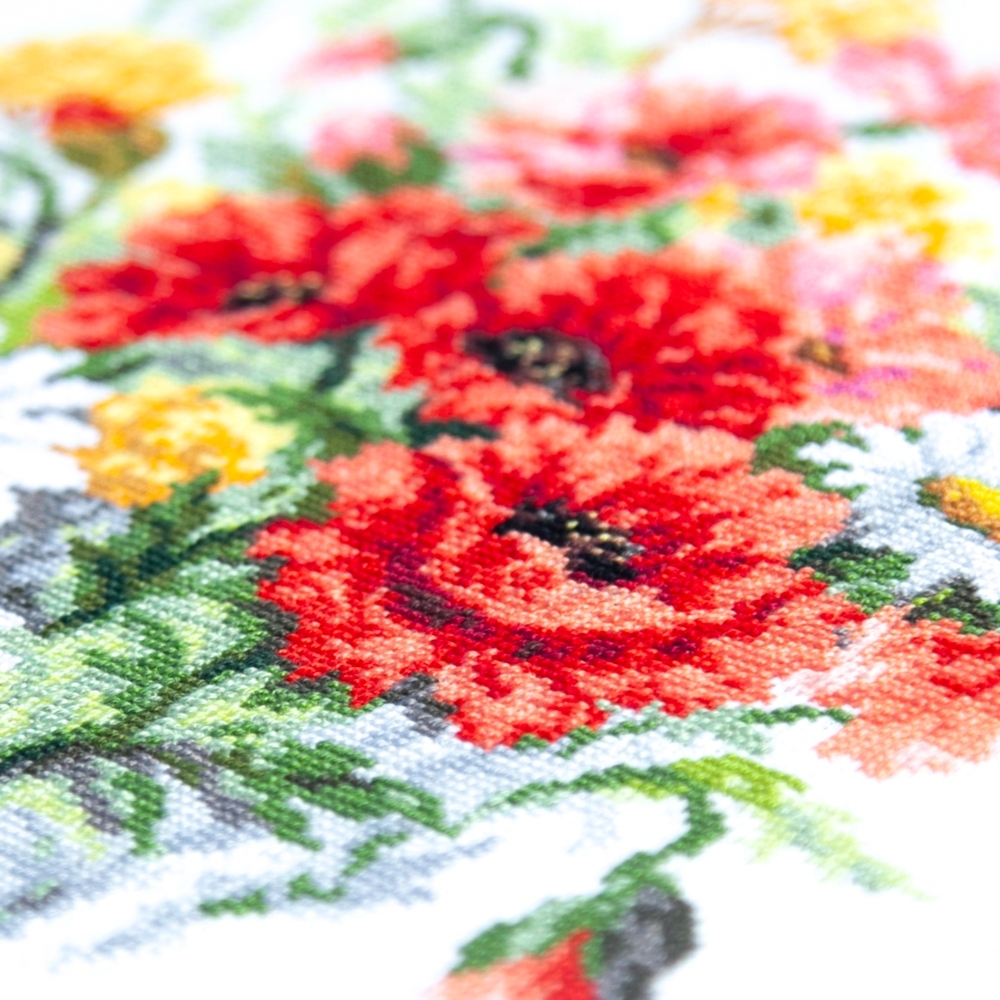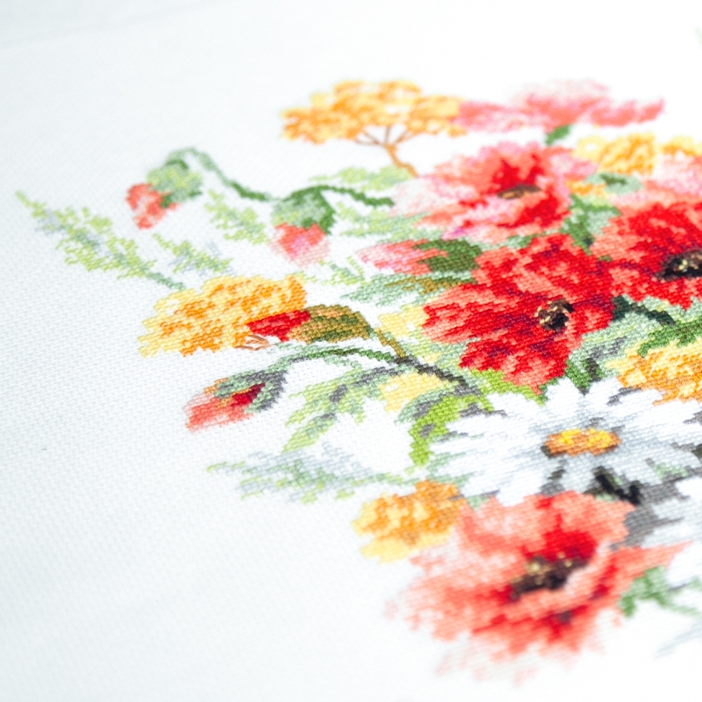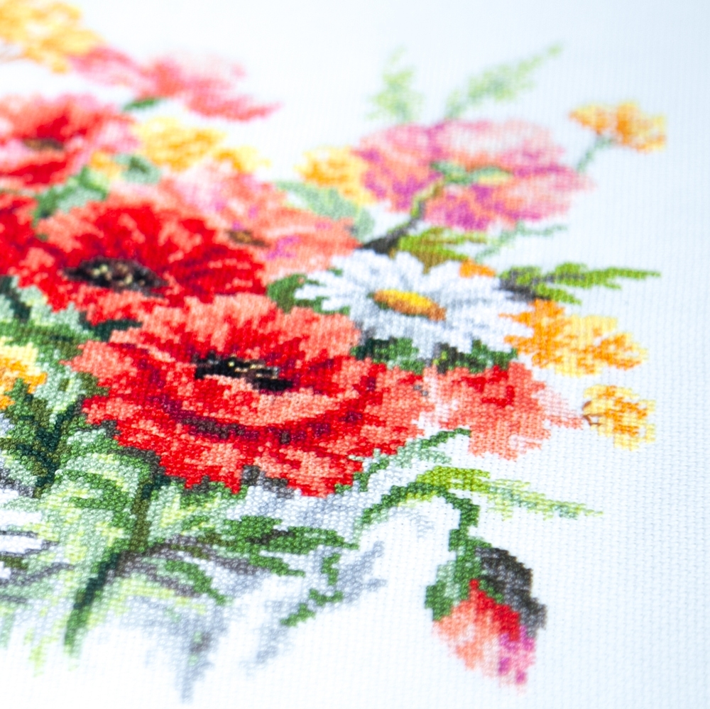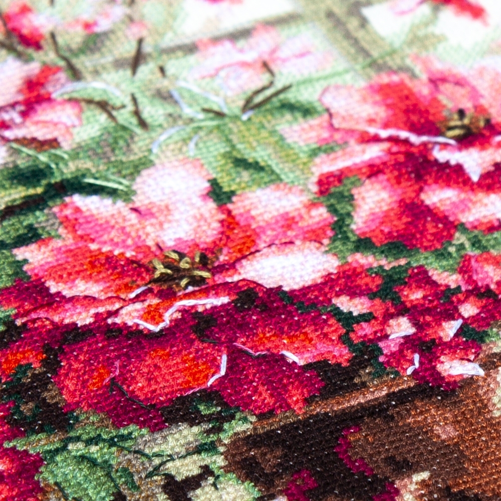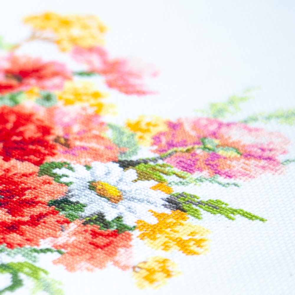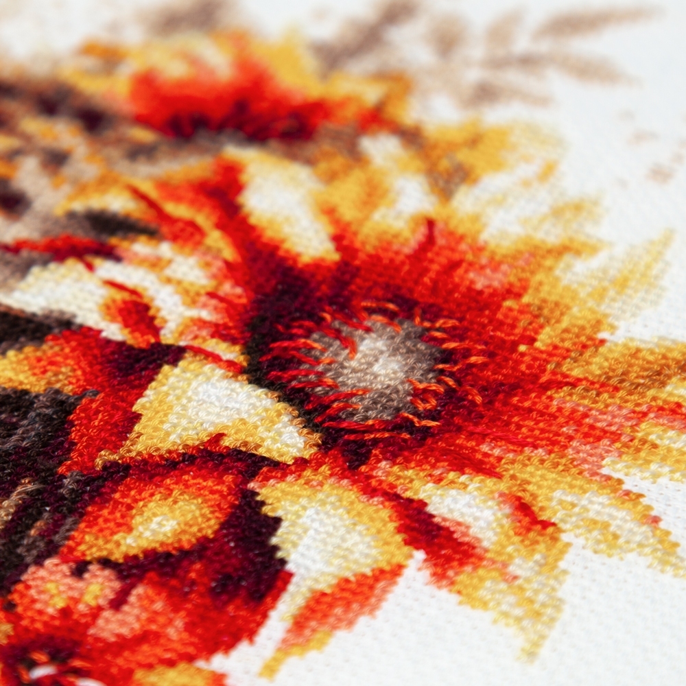 We support clients in promoting our brand: free printed catalogs of our embroidery kits, advertising banners with novelties and photos of finished embroidered works for the client’s website, framed embroidered models for trade shows, shops and showrooms.