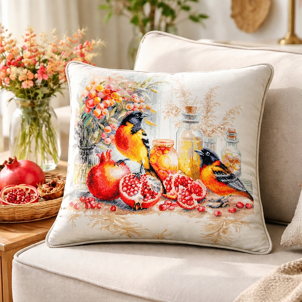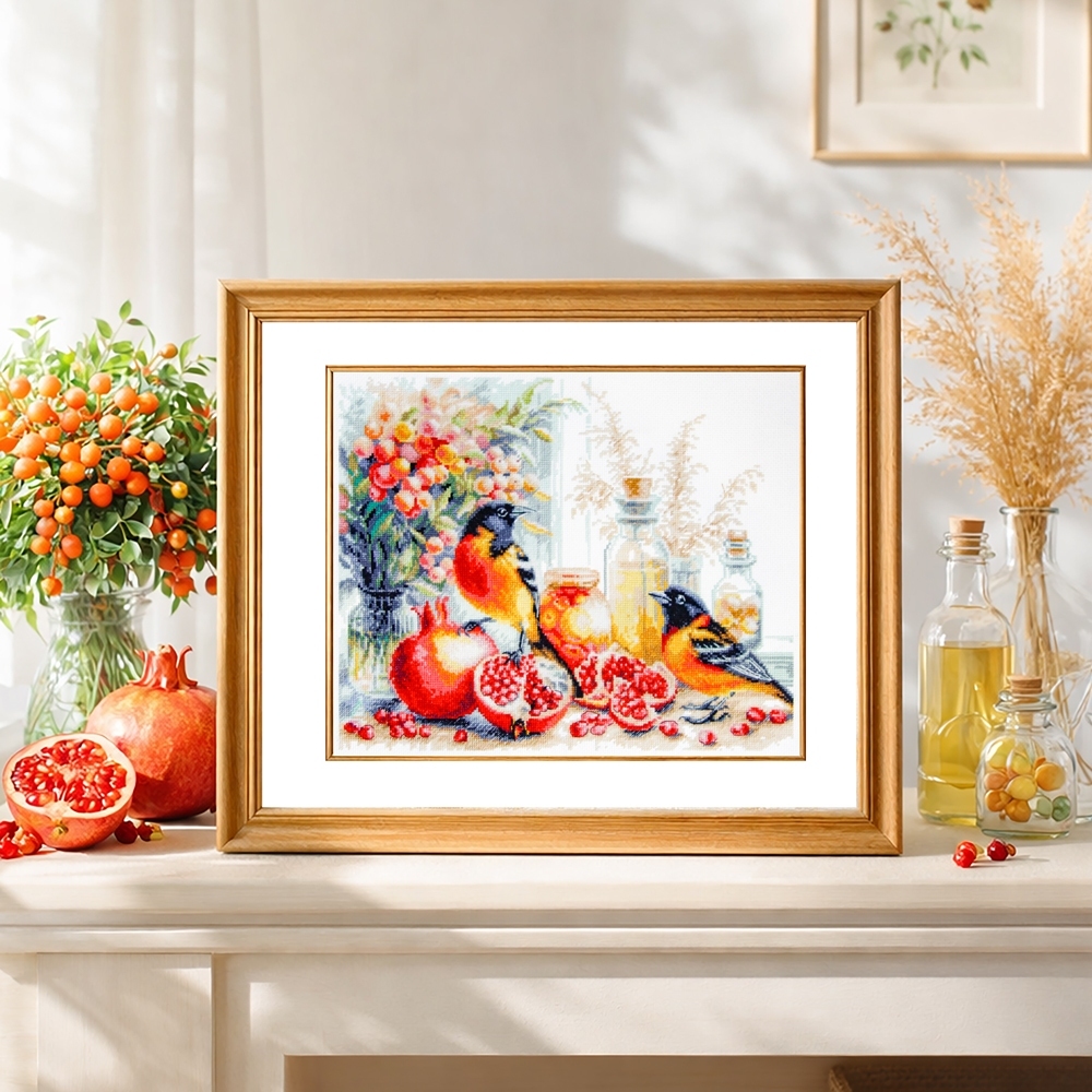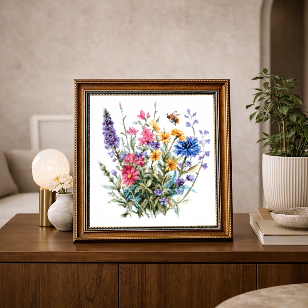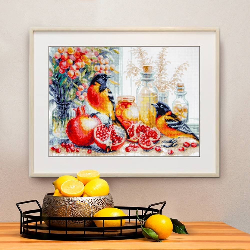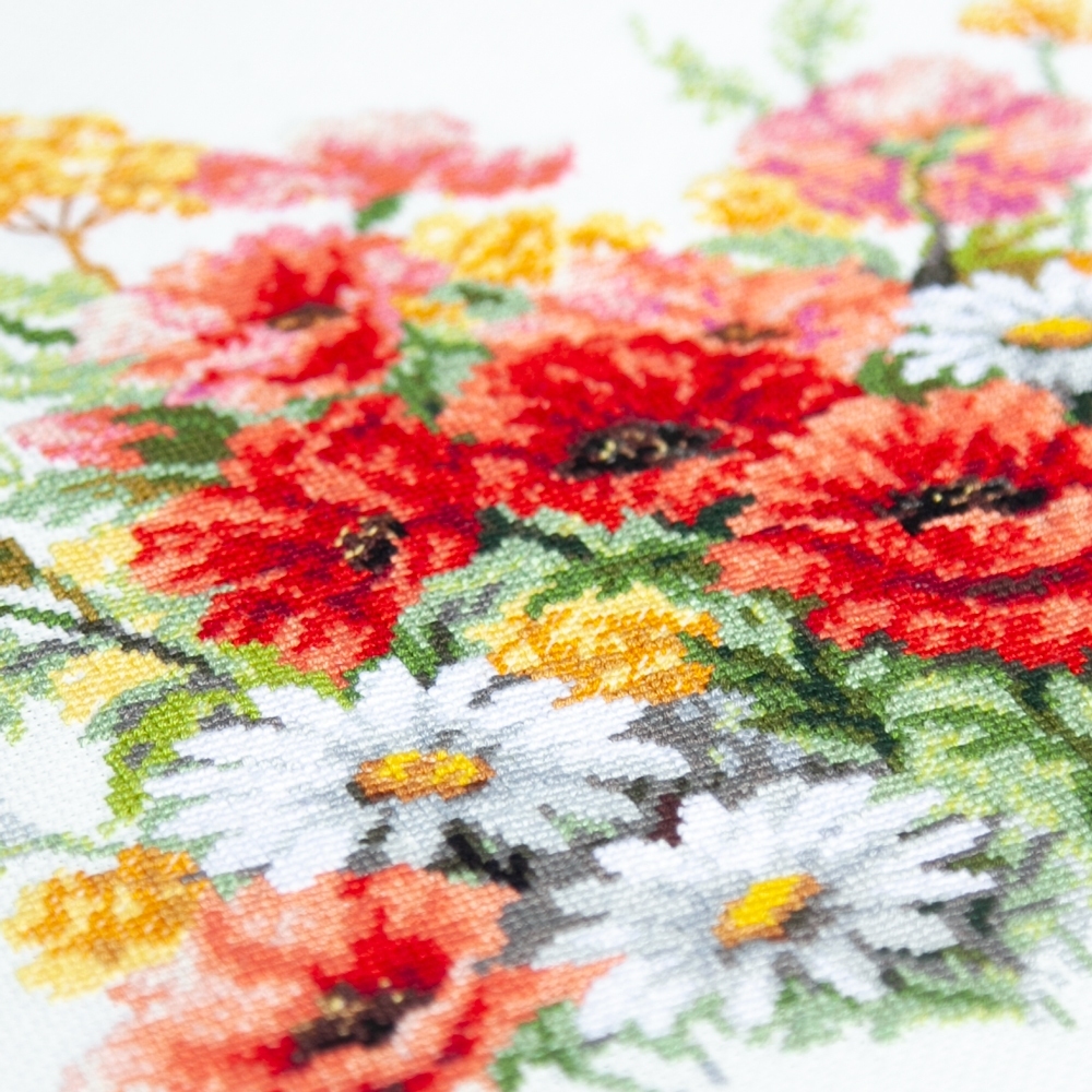 We support clients in promoting our brand: free printed catalogs of our embroidery kits, advertising banners with novelties and photos of finished embroidered works for the client’s website, framed embroidered models for trade shows, shops and showrooms.