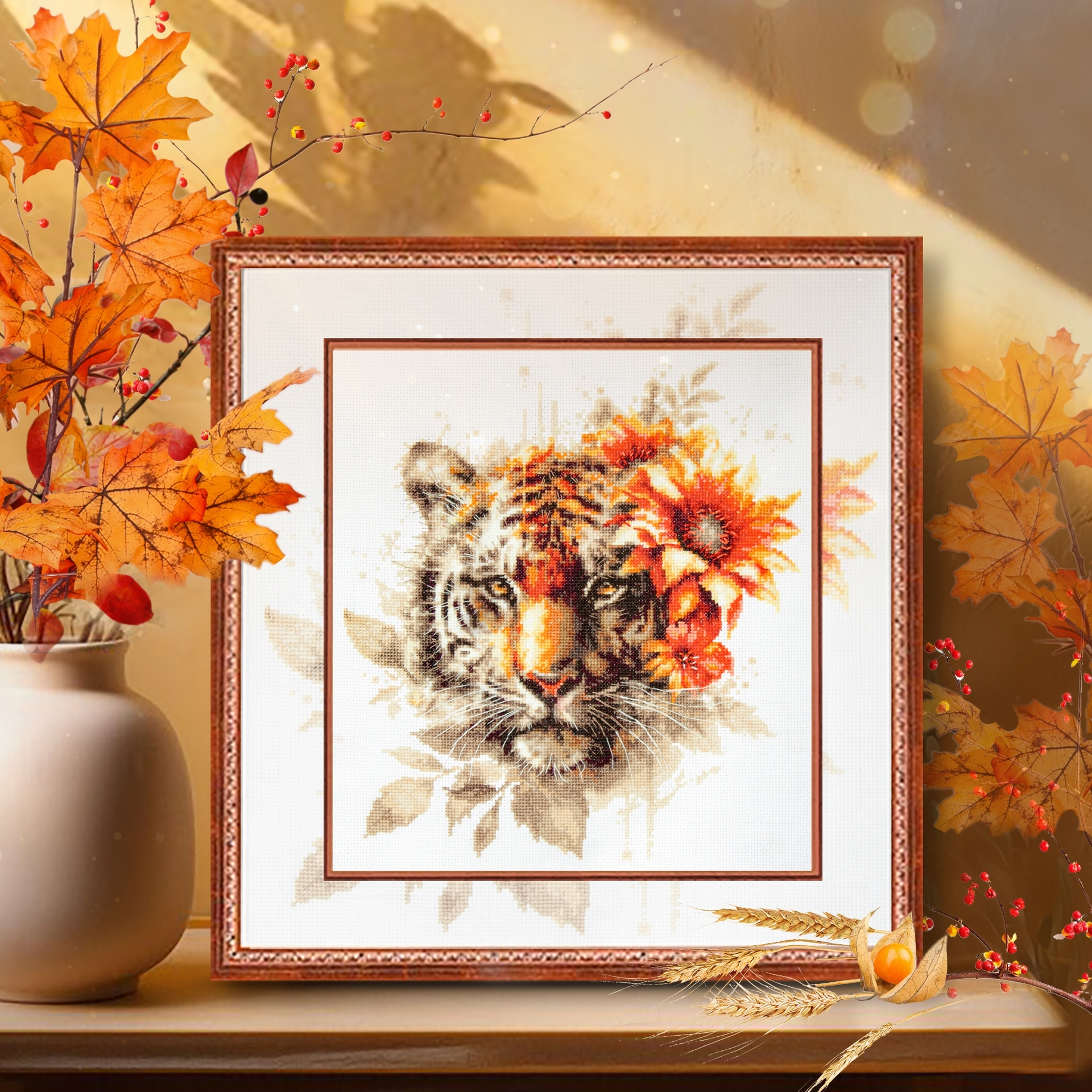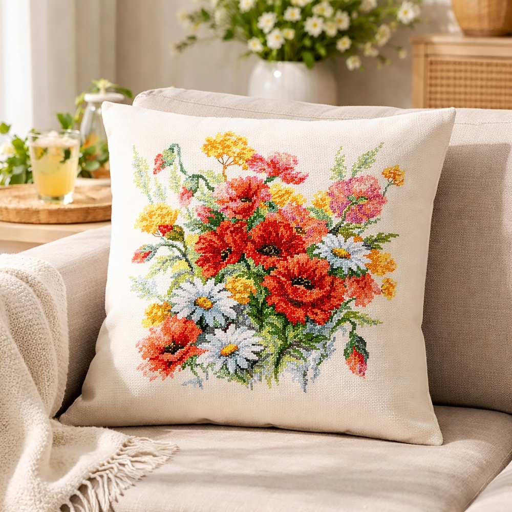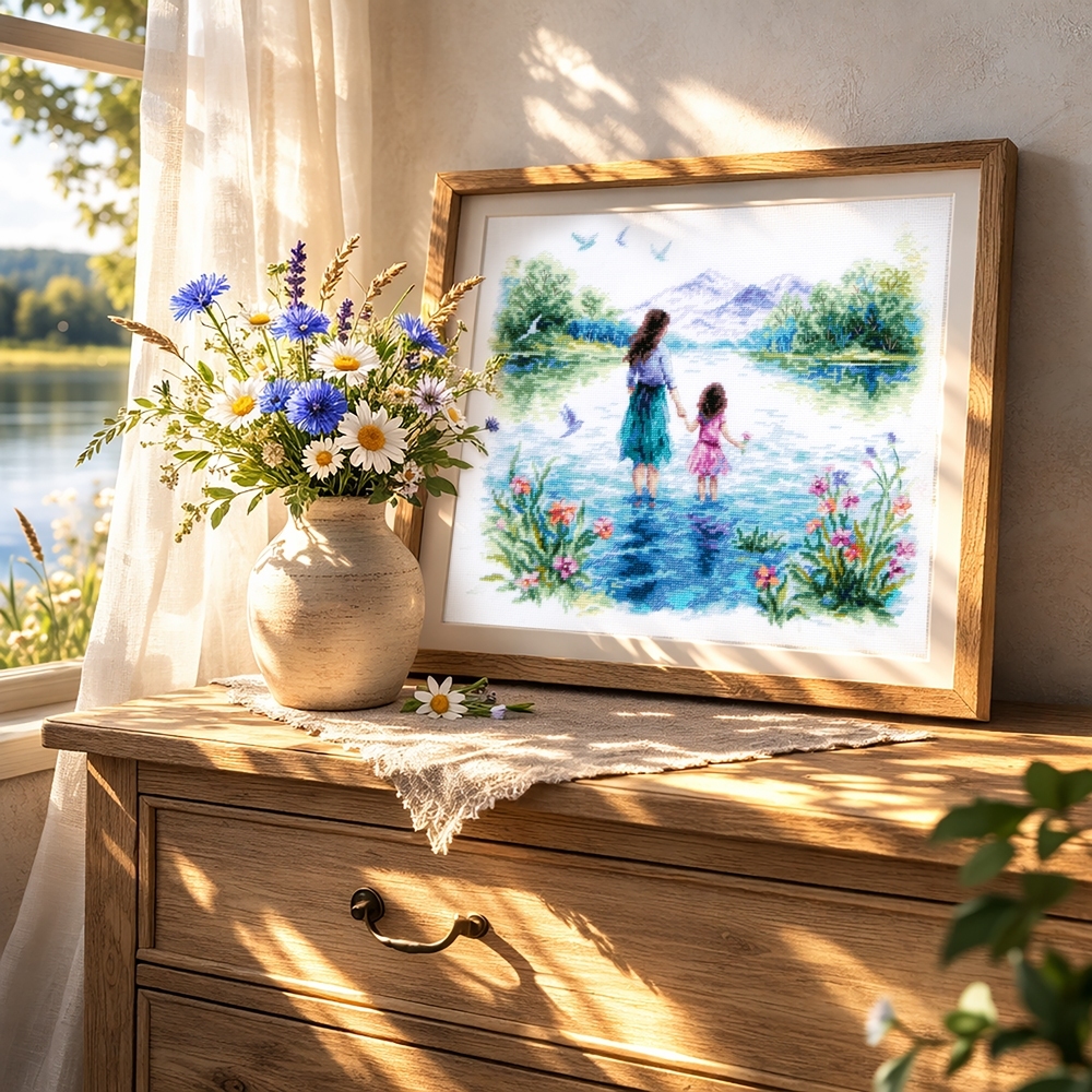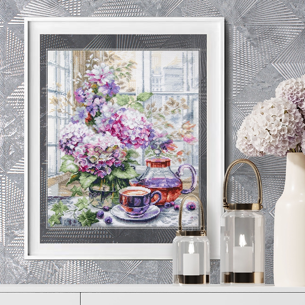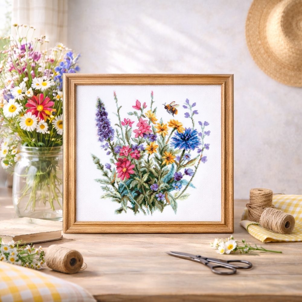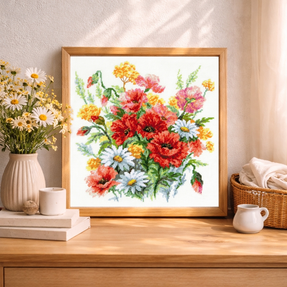 We support clients in promoting our brand: free printed catalogs of our embroidery kits, advertising banners with novelties and photos of finished embroidered works for the client’s website, framed embroidered models for trade shows, shops and showrooms.
